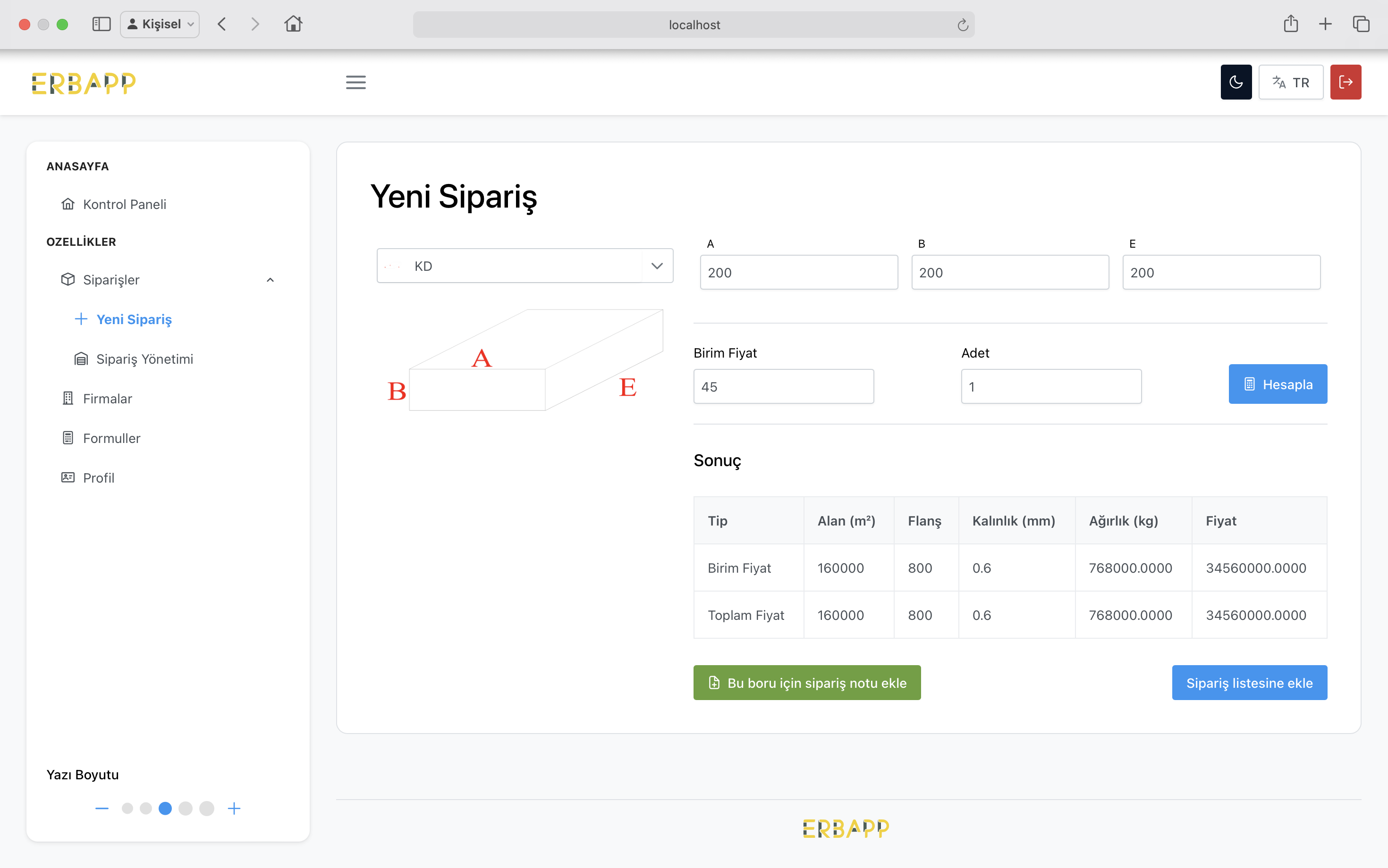 ErbApp, siparişlerinizi yönetmeyi ve takip etmeyi her zamankinden daha kolay hale getirir. Hem üreticilere hem de müşterilere, siparişlerin durumunu anlık olarak izleme ve her aşamada bilgi sahibi olma imkanı sunar. Şeffaf bir üretim süreci ile müşteri memnuniyetinizi arttırarak işletmenizi büyütmenize yardımcı olur.